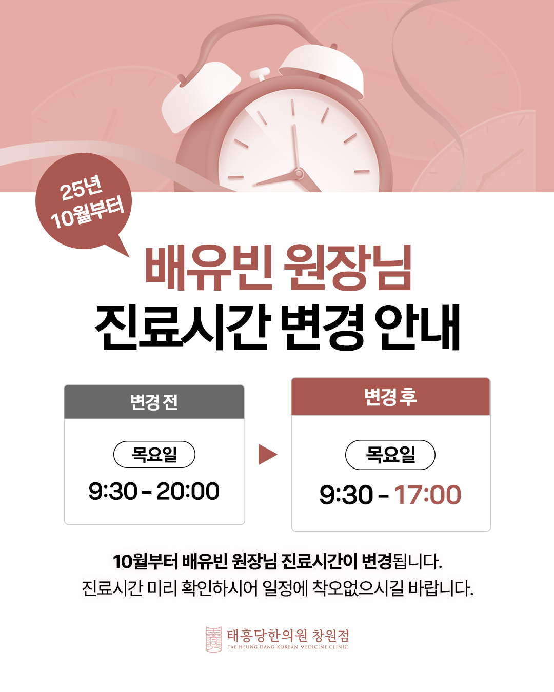 10월 1일(수)부터 진료시간 변경되어 안내드립니다.